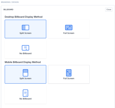Full Screen – Displays the billboard first, followed by a button to begin the form