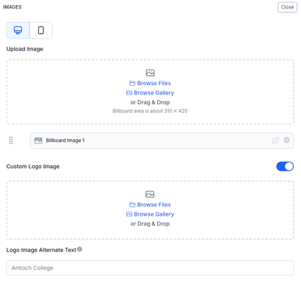 The Billboard is the visual header section of your form. You can configure how it displays on desktop and mobile.