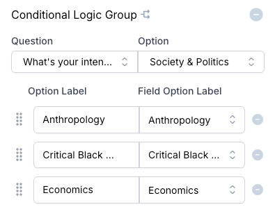 - Example: If a user selects that they are a Computer Science major, the next question dynamically filters to show only the different emphases available for that specific major.