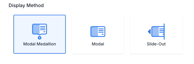 The most commonly used option is Modal Medallion, as it provides strong visibility without fully interrupting the visitor experience.