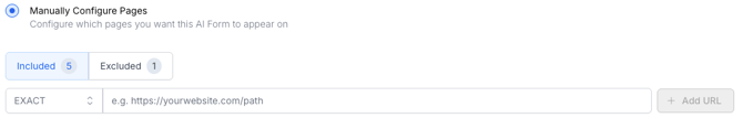 Important: While you can technically publish multiple forms to a single page, only one form will display to a visitor. If a URL already has a form assigned, you will see a yellow caution indicator icon next to that URL after saving your form variant.